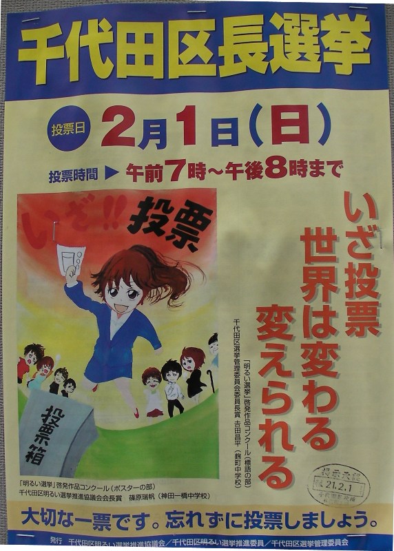 千代田区の選管のポスターです、アメリカと同じ様に変えられると良いですね、住環境も良く成ります。